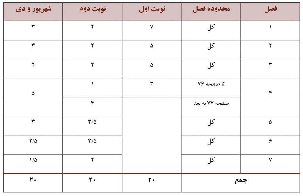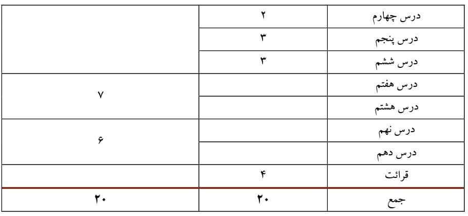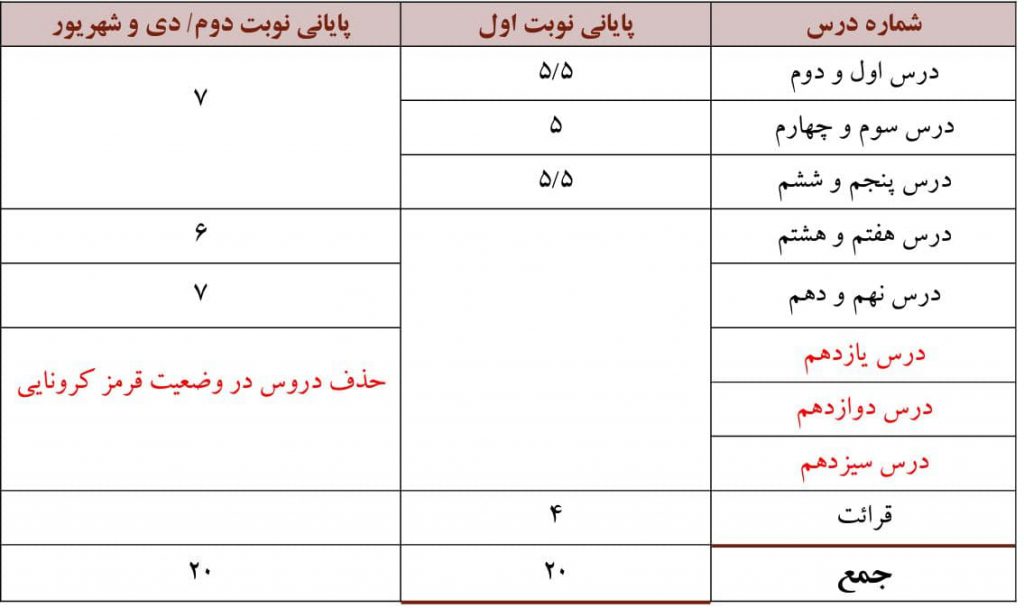 توجه : دروس 13_12 _11 در شرایط قرمز کرونایی برای مطالعه آزاد بوده و نباید در امتحانات و نیز آزمون های وروردی دانشگاه مورد سوال قرار گیرد .