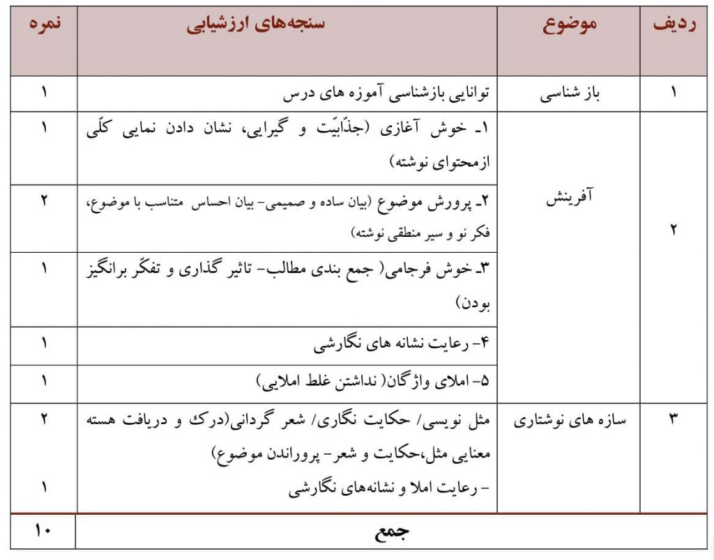 ب) نگارش : ۱۰ نمره شامل ۶ درس (2_4_6_8_10_12)