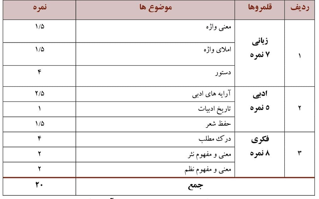 الف)فارسی : ۱۰ نمره شامل ۸ درس (1_3_5_9_11_13_14)