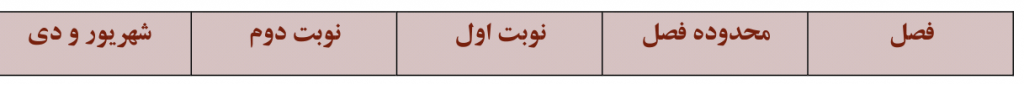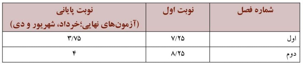 برنامه امتحانات نهایی