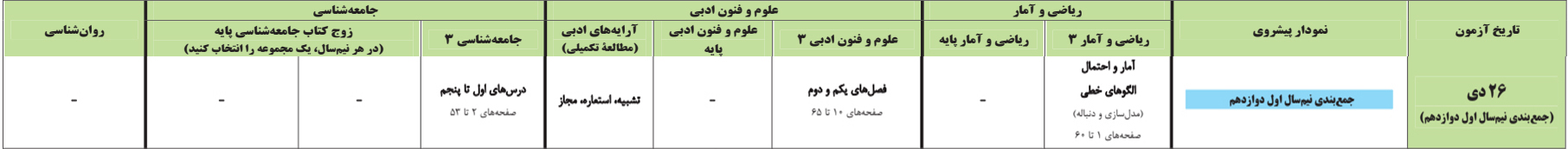 مباحث آزمون ویژه قلمچی ۳ بهمن ۱۴۰۴ دوازدهم انسانی