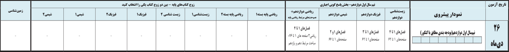 مباحث آزمون ویژه قلمچی ۳ بهمن ۱۴۰۴ دوازدهم تجربی